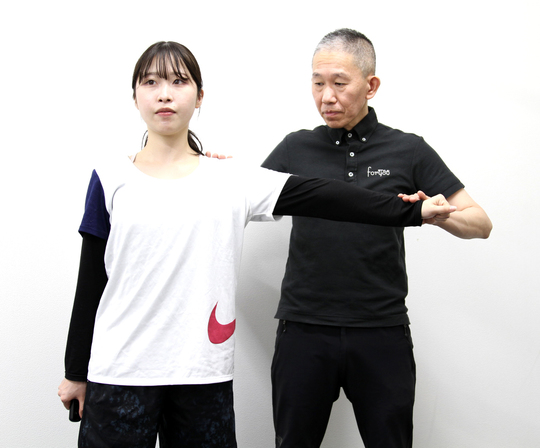 □お客様者のお身体の状態を把握した上で、痛みや不調のある部位だけでなく、それらの原因を把握し、適切な施術・トレーニングを行う為、関節の動きや、お身体全体のバランス等を確認致します。