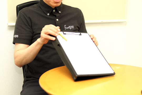 □お客様者のお身体の状態を把握させて頂き、適切な施術・トレーニングを行う為に、問診表をご記入頂きます。ご記入いただきました問診表を基に、詳細なカウンセリングを行います。お身体の状態・その他のご不安に関しましてご質問、ご不明点ございましたら、お気軽にご質問下さい。